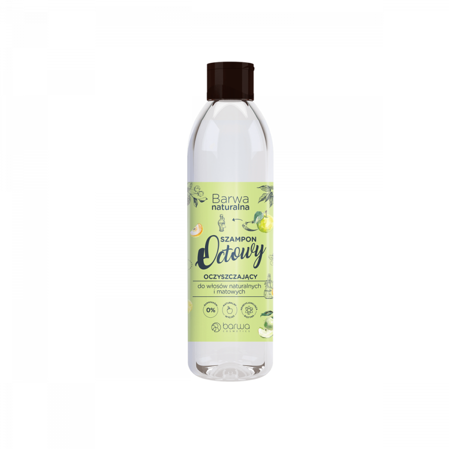 Oczyszczający szampon octowy. Receptura oparta na dobroczynnym działaniu naturalnego wyciągu z octu jabłkowego, który skutecznie oczyszcza włosy i skórę głowy z kosmetyków do stylizacji włosów. Szampon inspirowany domowym zabiegiem płukania włosów naturalnych i matowych octem jabłkowym, który przywraca włosom połysk oraz zdrowy wygląd. Zwieńczeniem receptury jest obecność odżywczego kompleksu witamin oraz kondycjonującej biotyny, które widocznie poprawiają kondycję skóry głowy i włosów, bez obciążania.