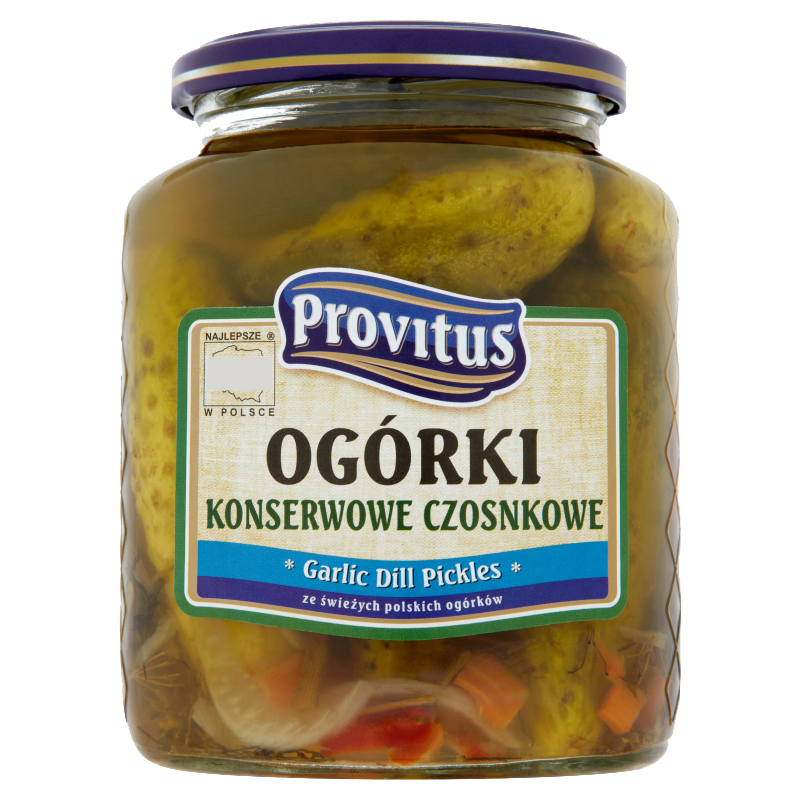 Tradycyjne ogórki konserwowe z dodatkiem czosnku.