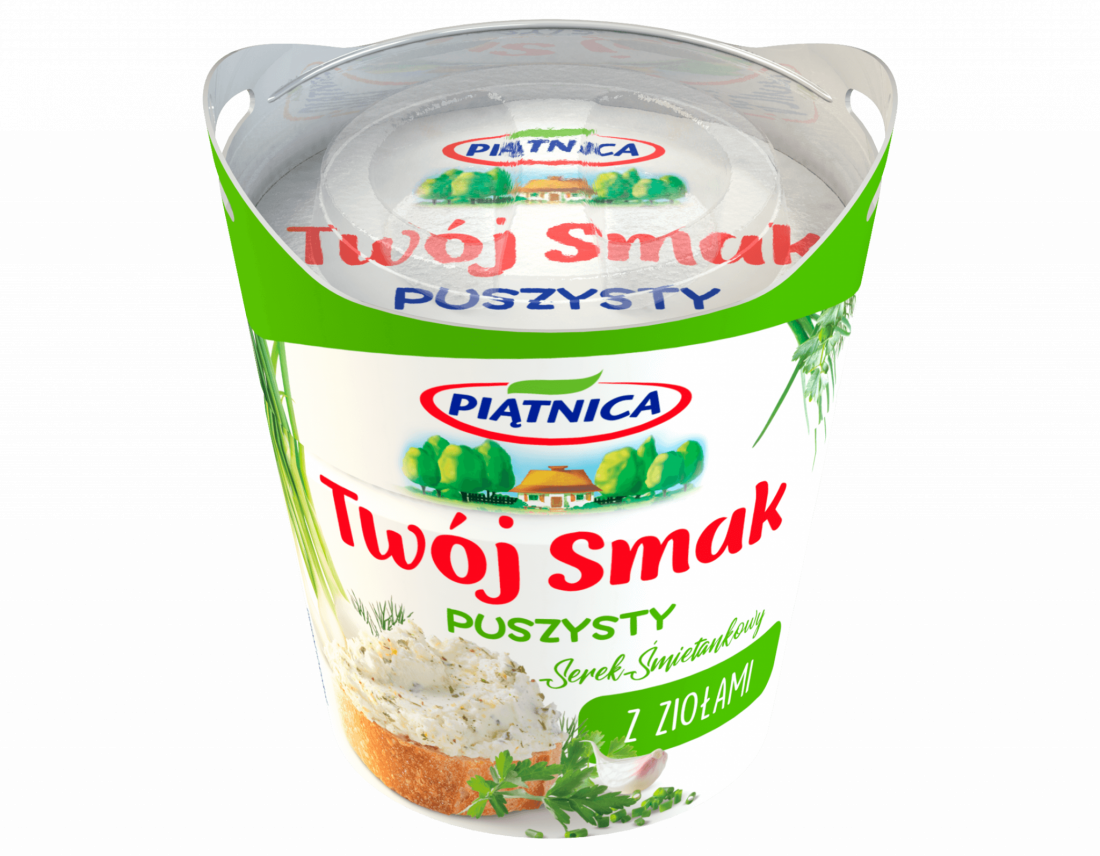 Twój Smak naturę ma już w naturze, bo jest prosty, pyszny i zdrowy. Pachnący, specjalnie dobrany bukiet ziół nadaje niezwykły charakter pulchnemu serkowi. Twój Smak Puszysty z Ziołami przyprawiliśmy nie za dużo, nie za mało – w sam raz, by tylko podkreślić smak śmietanki. Twój Smak Puszysty to wspaniały, lekki jak chmurka serek. Smakuje swojsko i śmietankowo, ale nadaliśmy mu całkiem nową, niezwykle puszystą formę. Wyprodukowaliśmy go więc i po swojemu, bo naturalnie, z dobrego lokalnego mleka bez GMO, i nowocześnie – dzięki specjalnemu procesowi spulchniania. Spróbuj tej leciutkiej pyszności na rumianym toście lub świeżutkim pieczywie.