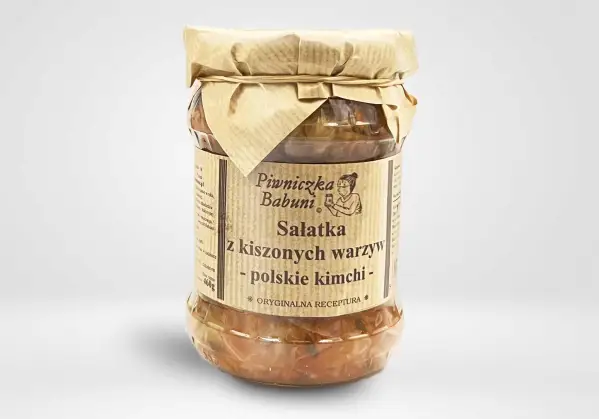 Kimchi pochodzi z kuchni koreańskiej i jest to mieszanka kiszonych warzyw, której podstawą jest kleik ryżowy. Oczywiście jest również wzbogacona tradycyjną pikantną papryczką Gochugaru. W Korei Kimchi uważane jest za przysmak narodowy i w praktycznie każdym domu opracowana została własna receptura na stworzenie tego wyjątkowego połączenia. My dzisiaj chcemy Ci przedstawić polską wersję tego wyrobu! Lubimy eksperymentować jako naród ze smakami świata i tego efektem jest właśnie Polskie Kimchi, które zabierze Cię w krainę niepowtarzalnych smaków! ? Połączenie kiszonych polskich warzyw zamknięte w słoiku z samą naturą byś mógł się nim cieszyć, kiedy tylko zechcesz.