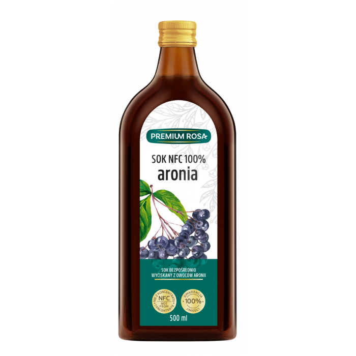 Sok z aronii tłoczony jest z owoców przy pomocy tradycyjnej prasy i pasteryzowany w niskiej temperaturze. Dzięki temu zabiegowi zachowuje swoje właściwości nawet przez dwa tygodnie od otwarcia butelki. Brązowe szkło chroni przed promieniami słońca, zachowując cenne składniki.