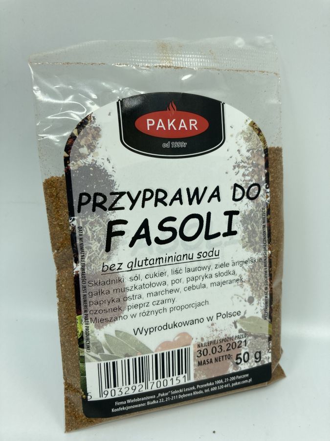 Przyprawa do fasoli, idealna do dan z fasola. Bez glutaminianu sodu.