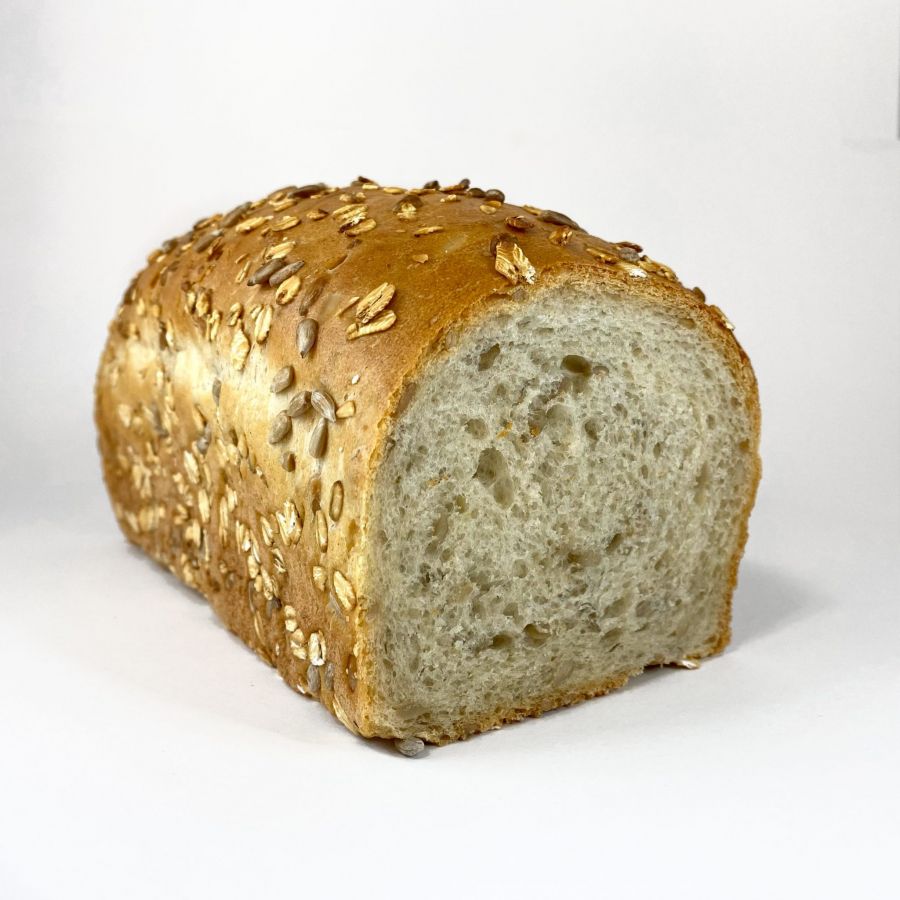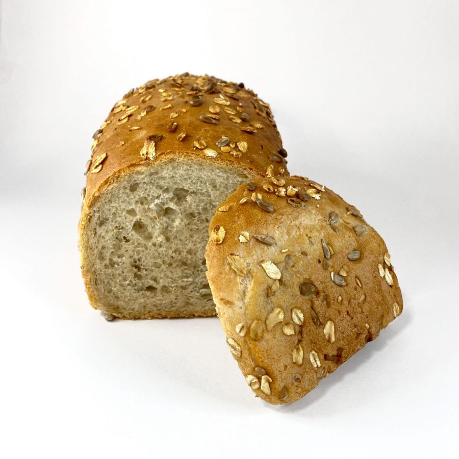 Chleb slonecznikowy. Obsypany slonecznikiem rowniez na spodzie.
